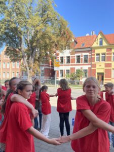 Der Tag begann mit der Begrüßung durch die Schulleiterin Frau Dittmer in der Aula. Anschließend bekam jeder Schüler sein FGO-Namens-Shirt. Es folgte eine Führung durch das Schulgebäude. Als nächster Punkt stand eine Rallye durch Osterwieck auf der Tagesord-nung. Das Ziel war die Eisdiele, wo es für alle ein Eis gab.