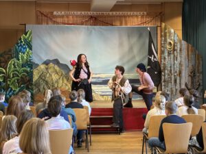 Sogar Herr Rischke wurde auf der Bühne ausgeraubt und nassgespritzt – da er keine Wertsachen bei sich hatte. Nach Seenot, einer aufregenden Begegnung mit einer Schlange und Jennys spektakulärer Ankunft im Heißluftballon, kam es zu einem spannenden Schwertkampf zwischen Jenny und Piratin Slick Nick. Am Ende wurde Robin gerettet – ein echtes Mitmach-Abenteuer, das für große Begeisterung sorgte.