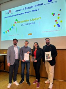 Wir gratulieren unserem Schüler Alexander Lippert aus dem 10. Jahrgang ganz herzlich zu seinem großartigen Erfolg beim Bundesfinale des Wirtschaftswettbewerbs! Alexander konnte sich deutschlandweit gegen zahlreiche Mitbewerberinnen und Mitbewerber durchsetzen und erreichte einen beeindruckenden 2. Platz – eine herausragende Leistung, auf die wir als Schule sehr stolz sind.