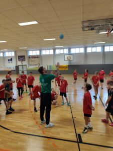 Gemeinsam vermittelten sie den Mädchen und Jungen in jeweils 60-minütigen Einheiten nicht nur handballerisches Können, sondern auch, wie wichtig Bewegung und eine gesunde Lebensweise sind – ein Kernanliegen der AOK-SCM-Kooperation. Klaudine Schönemann, Netzwerkkoordinatorin der AOK, begleitete den Tag und informierte die Schülerinnen und Schüler kurz über die Ziele der Initiative.