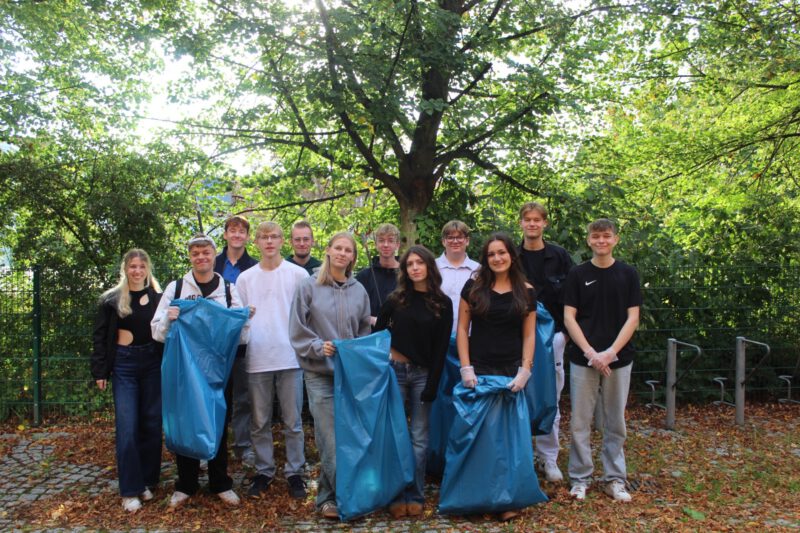Am vergangenen Freitag, den 19.09.2025, hat unsere Schulgemeinschaft im Rahmen einer Schülerinitiative des Schülerrates aktiv ein Zeichen für Nachhaltigkeit und Sauberkeit am FGO gesetzt. Unter dem Motto „Aktion ‘Sauberer Schulhof’ ” versammelten sich zahlreiche Schülerinnen und Schüler aller Klassen sowie Lehrkräfte, um unseren Pausenhof und die angrenzenden Bereiche von herumliegendem Müll zu befreien. Ausgestattet mit Handschuhen und Müllsäcken, die der Hausmeister bereitstellte, teilten sich die Gruppen auf, um in den 15 Minuten der Frühstückspause möglichst viele Bereiche abzudecken. Die Schülerinnen und Schüler zeigten großen Eifer und Engagement, und am Ende der Aktion war das Ergebnis – ein sichtbar saubereres Umfeld – eine tolle Belohnung für die gemeinsame Anstrengung.
