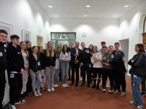 Am Freitag, dem 24.02., besuchten die beiden 9. Klasse des Fallstein- Gymnasiums den Landtag des Landes Sachsen-Anhalt in Magdeburg. Um 9:00 Uhr startete der Tag für die Schülerinnen und Schüler von Halberstadt aus mit dem Zug. Nach einigen Sicherheitskontrollen stand gegen 11:30 Uhr der erste Programmpunkt an: Eine Führung durch das Landtagsgebäude. Dabei erfuhren die Jungen und Mädchen mehr über den Ursprung des mehrflügeligen Hauses und trafen sogar auf den Landtagspräsidenten, der sie herzlich willkommen hieß. Anschließend konnten die Schüler im Plenarsaal einer Sitzung beiwohnen, bei der sie sich einen Überblick über die unterschiedlichen Fraktionen schaffen konnten und einige Eindrücke rund um die Diskussionen sammelten. Im letzten Programmpunkt hatten die Neuntklässler dann ca. 45 Minuten Zeit, um Herrn Alexander Räuscher, Abgeordneter der CDU (Wahlkreis Blankenburg, Nordharz, Ilsenburg und Osterwieck), einige Fragen zu stellen. Dieser scheute nicht zurück und erzählte ihnen Einiges über seinen Alltag als Abgeordneter, als auch über seinen privaten Werdegang zum Politiker. Danach blieb noch etwas Freizeit für die Jugendlichen, die sie ganz individuell in der Landeshauptstadt bis zur Abfahrt des Zuges nutzen konnten.