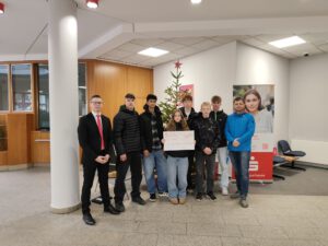Im Beisein einiger aktiver Teilnehmerinnen und Teilnehmer des FGO überreichte Geschäftsstellenleiter Andreas Kuffner kurz vor Weihnachten einen symbolischen Scheck in Höhe von 250 Euro an Sportlehrer Sebastian Knobbe. Dieser bedankte sich im Namen der Fachschaft Sport herzlich für die wertvolle Unterstützung, auch seitens des Schulfördervereins, die die Teilnahme der Schülerinnen und Schüler an diesem sportlichen Großereignis erst möglich macht.